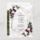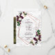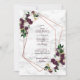 Modern and trendy, this pretty wedding Save the Date card design featuring a faux copper geometric embellished with gorgeous watercolor florals and eucalyptus greenery in a plum burgundy marsala and white, over a faux white marble texture. The back of the card features your favourite engagement photo. Part of a matching wedding suite. Copyright Elegant Invites, all rights reserved.