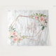 Modern and trendy, this gorgeous wedding tapestry design features a faux copper rose gold geometric embellished with coppery pink watercolor roses and flowers, over a faux white marble texture. The couple's names and some wedding details are in a matching copper colour. Copyright Elegant Invites. All rights reserved.