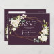 Modern and trendy, this wedding invitation RSVP design features a faux copper geometric embellished with watercolor white floral and eucalyptus greenery floral arrangements, over a modern plum background. This is the no meal option. Part of a matching wedding set. Copyright Elegant Invites. All rights reserved.