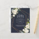 Pretty and trendy, this bridal shower postcard invitation design features a faux copper rose gold geometric embellished with white floral and eucalyptus greenery floral arrangements. Contact designer for matching products, with a navy blue background. Copyright Elegant Invites. All rights reserved.