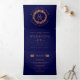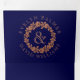 Copper glitter rose wreath navy blue wedding Tri-Fold invitation