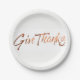 Copper-look Give Thanks script Thanksgiving design Paper Plate