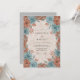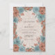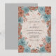 Warm terracotta and cool dusty blue tones blend in this earthy botanical design. Painterly dahlias and roses create a lush floral arrangement with detailed petals and soft foliage. This palette evokes a rustic autumn mood, perfect for an outdoor or seasonal setting with a bohemian aesthetic.