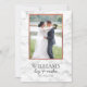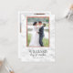 A modern elopement wedding announcement and reception invitation. A white marble texture design displays your faux copper edged vertical wedding photo on the front, followed by your married name, first names in hand lettered script typography, and your wedding date. This design shows off 2 of your favourite wedding photos, with the second being on the back, with the wedding announcement and reception invitation details. This design is easily personalised with this template design. A chic, sophisticated design for the stylish bride. Copyright Elegant Invites, all rights reserved.