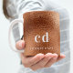 A faux copper metallic looking background. Personalise and add your monogram initials and full name. White letters.