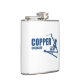The flask itself is fine. It’s a cheap flask, obviously bought in bulk, however am prepared to overlook that. Given that it is a personalized item, I would have liked to have seen gift boxing instead of the generic packaging. Terrible printing, and/or quality. It’s a cheap, tacky vinyl. It is not cut straight and is also applied in a way that it is overhanging the bottom, causing the glue to catch on items and it will eventually roll and tear, damaging the wrap.