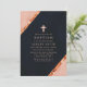 Celebrate the sacred occasion of a baptism with this exquisite copper, pink, and navy blue sparkle invitation. Featuring a delicate cross and geometric accents with copper sparkles, this invitation is perfect for inviting friends and family to join in this special event. The elegant contrast of deep navy, soft pink, and shimmering copper adds a touch of modern sophistication and beauty, making it ideal for such a meaningful celebration. Customise the details to create a unique and memorable invitation for your child's baptism.