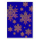 Copper Snowflake Overlay on Cobalt Blue. The single snowflake image found online which I made transparent. But this over-all design is my own creation. Perfect for a Christmas Card or all Winter long. Blank inside. I took another card I previously designed that had the 15 different sizes of snowflakes and replaced each image with the new one. Then, I copy and pasted the whole thing twice. So, each snowflake is a stack of four same images. This gives a brighter image against the dark cobalt blue background and a more crystal look. I chose the cobalt blue colour by eye. When I compared this to some other hex codes for other artists' cobalt blue, I liked mine better. I then made several matching items including note cards, stickers, porcelain plates (large and standard), bone china mugs, porcelain platters, 70 x 50 inch tablecloths, 12 x 12 inch cloth napkins, porcelain ornaments, lamps, night lights, wrapping paper, and more.