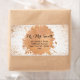 Rose Gold, Copper sparkly spray wedding collection design brings cheek to chic. Sparkly simple, minimalist design. A double sided wedding stationary, announcement text on one site and on the other side the bride and groom a duo-gram initials on top of a gold leaf seal. There are 2 versions of a gold leaf seal; A hollow circled brush stroke, and the other is like a messy ink spill.
