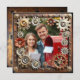 Copper, gold and silver steampunk wedding RSVP cards. Steampunk themed with gold, silver and copper metal gears and hearts. Upload your favourite picture in the personalise area and edit the text on the back to add your wedding reception meal choices.