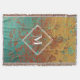 Copper Turquoise Metallic Texture Monogram Initial Throw Blanket