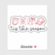 This sticker features a baseball and softball themed design in a red, hand-drawn style. It includes a glove, crossed baseball bats with small heart shapes around them, a baseball with a bow tied around it, and a baseball cap with the text "tis the season". The design is simple yet stylish and trendy.