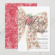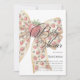 This baby shower invitation features a coquette style strawberry bow on a simple clean background for a chic romantic luxury look. The back shows a marble glitter print that adds a decorative refined finish without shimmer.