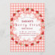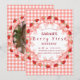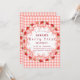 This invitation features a classic red and white gingham (checked) border that evokes summer picnics and garden parties. Adorned with delicate watercolor strawberries and the signature soft pink coquette bow, it strikes the perfect balance between "preppy" and "sweet."