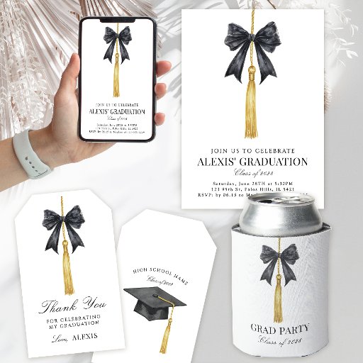 Black Bow Coquette Graduation Party PrintsDesigned by Ramune Freze