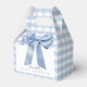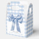 This coquette & cute boy's baby shower favour box features a big blue bow/ribbon on a white background with blue gingham plaids/checks. Personalise it for your needs. You can find matching products at my store.