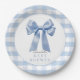 Coquette Blue Bow Ribbon Boy Baby Shower Paper Plate