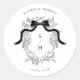 Coquette Bow Crest Monogram French Wedding Classic Round Sticker