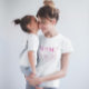 Cute bow theme t shirt for your child's birthday party. Illustration of pink ribbons. The text says "mum of the birthday girl."