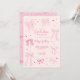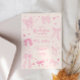 Vintage and coquette graduation party invitation card featuring illustration of pink bows and hearts.