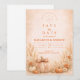 Warm, romantic, and effortlessly seasonal, this fall wedding design features a rich heirloom pumpkin surrounded by soft florals and delicate autumn foliage. A graceful botanical arch frames the wording, creating a balanced and elegant composition with subtle rustic charm. The warm neutral background and burnt orange accents make it perfect for an outdoor autumn celebration, barn wedding, or harvest-inspired event.