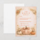 Warm, romantic, and effortlessly seasonal, this fall wedding design features a rich heirloom pumpkin surrounded by soft florals and delicate autumn foliage. A graceful botanical arch frames the wording, creating a balanced and elegant composition with subtle rustic charm. The warm neutral background and burnt orange accents make it perfect for an outdoor autumn celebration, barn wedding, or harvest-inspired event.