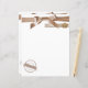 Pretty bow top border with Coquette style is printed on both sides of this 8.5 x 11 inch paper. The photo realistic bow top border has scrapbook elements printed in place: jewelled paper flower, facsimile paper label and badge on lower left. Ready to ink in your words and artful illustrations.