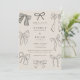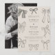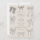 Vintage and coquette wedding invitation card featuring hand drawn illustration of charcoal bows.