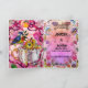All cute pastel coquette with a tea party setting, tea cups, pastries, candle drum, bird, cat, butterfly, bee, dragonfly, cute things and etc