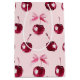 A beautiful hand-drawn illustration of cherries over a pink background, with a pink bow! Very coquette, very cute