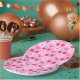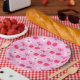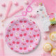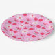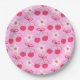 This is cute cherries with bows and white retro flowers on pink background. It's cute paper plate for birthdays or baby shower with cherry or preppy theme