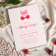 Celebrate a sweet Valentine-inspired baby shower with this coquette and charming invitation. Featuring heart-shaped cherries tied with a delicate bow, soft pink stripes, and romantic red accents, this design is perfect for a February celebration. Ideal for a girl baby shower with a coquette and playful feel, fully customizable with your event details.