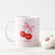 Super sweet coquette cherry design features a beautiful double cherry, topped with a lovely pink bow. Pink striped background makes this a great addition to your coquette aesthetic.