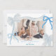 Celebrate the season in style with this charming, coquette-inspired Christmas photo card, featuring hand-drawn bows, soft colours, and a romantic, ribbon-filled design. The front features your favourite picture framed by four hand-drawn bows—two bold cream ribbon with baby blue stripes, plus two smaller accents in classic sky blue and light blue. The back offers a a refreshing frosty blue background with a delicate bow pattern.