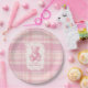 Coquette Gingham French Teddy Bear Baby Shower Paper Plate