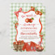 Coquette Green Plaid Bow Apple 1st Birthday Invitation