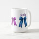 Sip in style with this adorable nautical-themed mug featuring two coquette-inspired ribbon bows—one in soft purple and the other in ocean blue—each adorned with dainty pink anchor motifs. Perfect for sea lovers with a feminine flair, this design adds a touch of maritime magic to your morning routine. The personalized name floats above the blue bow in elegant purple script, making this mug a delightful personalized gift for birthdays, beach bridesmaids, or anyone who adores coastal charm with a girly twist.