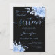 Coquette Navy Blue Sweet 16 Floral Glam Black Invitation