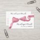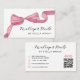 Pretty bow-themed business card with a pretty bow and ribbon in a soft shade of pink with black fonts. The girly design is perfect for a profession in the beauty industry or pageant industry. Add a url to the QR code so people can scan it with their smartphones and easily find your online presence.