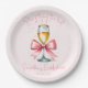 Coquette, pink cute bow, aesthetic, watercolor, Bridal shower paper plates.