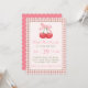 Our invitation features a pink bow bridal shower theme, complemented by the irresistible allure of cherries and soft gingham check details. The pink gingham bow ribbon adds a touch of charm and elegance, evoking feelings of nostalgia and romance. With customisable options, you can easily edit the invite to suit your specific event details, ensuring that every aspect of the celebration is personalised to perfection.