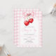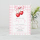 Coquette Pink Bow Cherry Birthday Invitation