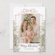 Share holiday joy with this elegant Merry Christmas photo card. Featuring four of your family photos framed by watercolor evergreens, ornaments, and a festive coquette pink bow, this design beautifully blends seasonal charm with a modern touch.
