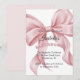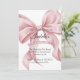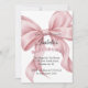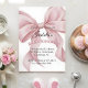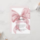 Celebrate the sweet arrival of your baby girl with this elegant coquette watercolor pink bow baby shower invitation. Featuring a delicate, hand-painted blush pink bow, this design perfectly captures the popular coquette and grandmillennial aesthetic. This chic and minimalist invitation is ideal for a sophisticated garden party, a classic tea room celebration, or a cosy home gathering. All text fields are fully customisable, allowing you to easily add the honoree's name, date, time, location, and RSVP details. Printed on high-quality cardstock with a soft finish, it’s a timeless keepsake for your special day.