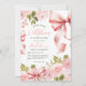 Coquette Pink Bow & Pastel Floral First Birthday Invitation