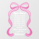 Let your customers or clients know your open hours with this cute open hours window decal with your small business's hours framed by a simple illustration of a pink bow with long curled ribbons. Personalise the opening hours window cling with your phone number, and end it with "Welcome!" in a cute script. The perfect opening hours window cling for cute boutiques, beauty salons, hair salons, pet groomers, and more!
