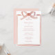 Trendy coquette style wedding invitation with some vintage flair, the paper ribbon, hand drawn, centred with a paper flower facsimile. Cute bow theme for a casual wedding with lots of personal warmth. Pretty pink.