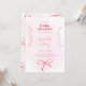 Invite guests in style with this coquette-inspired baby shower invitation, featuring soft pink hues, delicate ribbon details, and an elegant watercolor background. The feminine and charming design exudes sophistication while keeping a playful touch, perfect for celebrating the mum-to-be. A timeless and stylish choice for a memorable baby shower event.