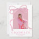 Coquette Pink Ribbon & Bows Photo Graduation Announcement with pink ribbon and bow pattern on the back.