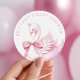 Elegant round baby shower stickers featuring a watercolor swan princess with a blush pink bow. Perfect for favour bags, envelopes, gifts, or party décor. A sweet detail that adds charm and style to your baby girl’s celebration.